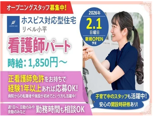 【東京都小平市】看護師パート・アルバイト募集要項・ホスピス対応型住宅 リベル小平