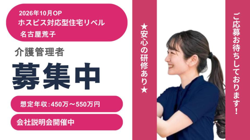 【愛知県名古屋市】介護施設の管理職・管理職候補正社員募集要項・ホスピス対応型住宅リベル 名古屋荒子