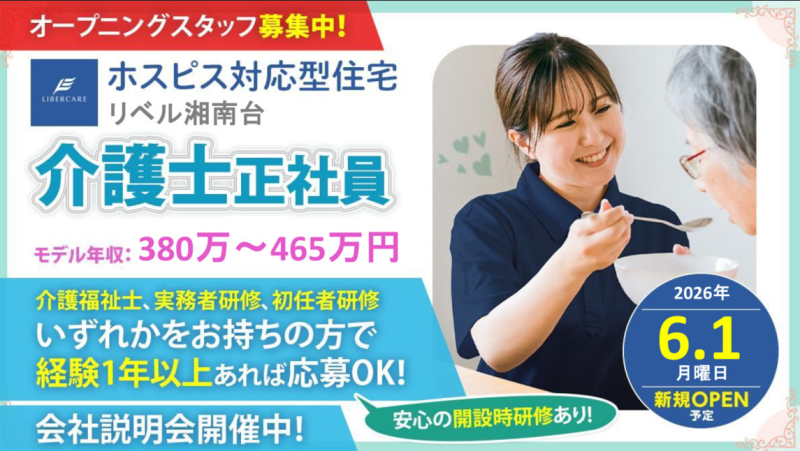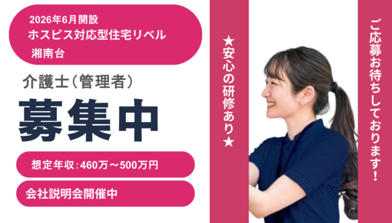 【神奈川県藤沢市】介護職・ヘルパー正社員募集要項・ホスピス対応型住宅リベル 湘南台