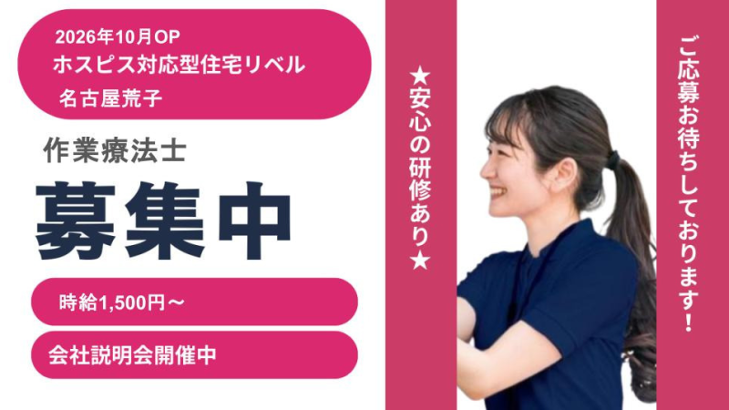 【愛知県名古屋市】作業療法士パート・アルバイト募集要項・ホスピス対応型住宅リベル 名古屋荒子