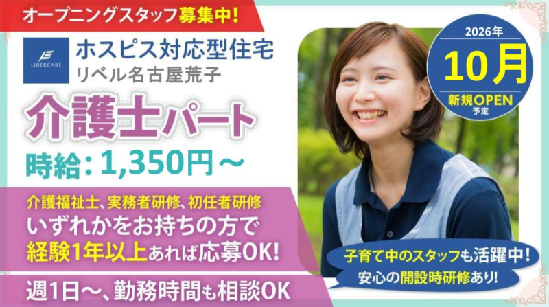 【愛知県名古屋市】介護職・ヘルパーパート・アルバイト募集要項・ホスピス対応型住宅リベル 名古屋荒子