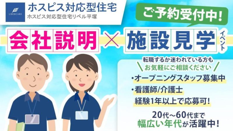 【神奈川県平塚市】看護師パート・アルバイト募集要項・ホスピス対応型住宅リベル 平塚