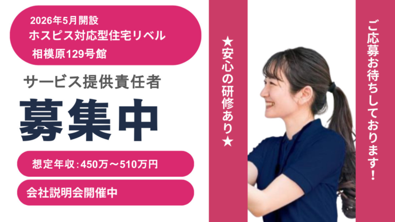 【神奈川県相模原市】介護職・ヘルパー正社員募集要項・ホスピス対応型住宅リベル 相模原129号館