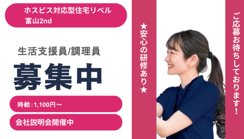 【富山県富山市】介護職・ヘルパーパート・アルバイト募集要項・ホスピス対応型住宅リベル 富山2nd