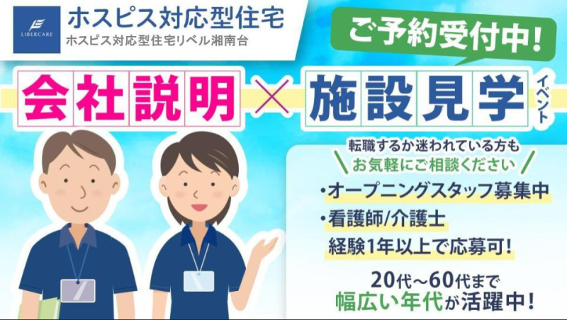 【神奈川県藤沢市】介護職・ヘルパーパート・アルバイト募集要項・ホスピス対応型住宅リベル 湘南台